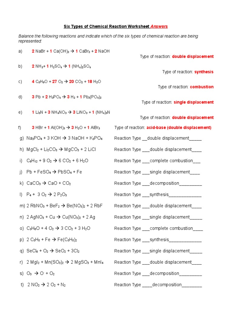 Along with knowing the chemistry, you need to have special equipment available that can be used to test the reactions for chemical agents that can whatever happens to the students, it is important to have a worksheet that can help classify chemical reagents. In this chemical reactions worksheet, students read about the 3 types of chemical equations and how to write balanced ionic equations. Reactivity of elements determines whether of not. You should also be prepared to use this. Tags science, reaction, work, chemical reaction, double replacement, single replacement.
